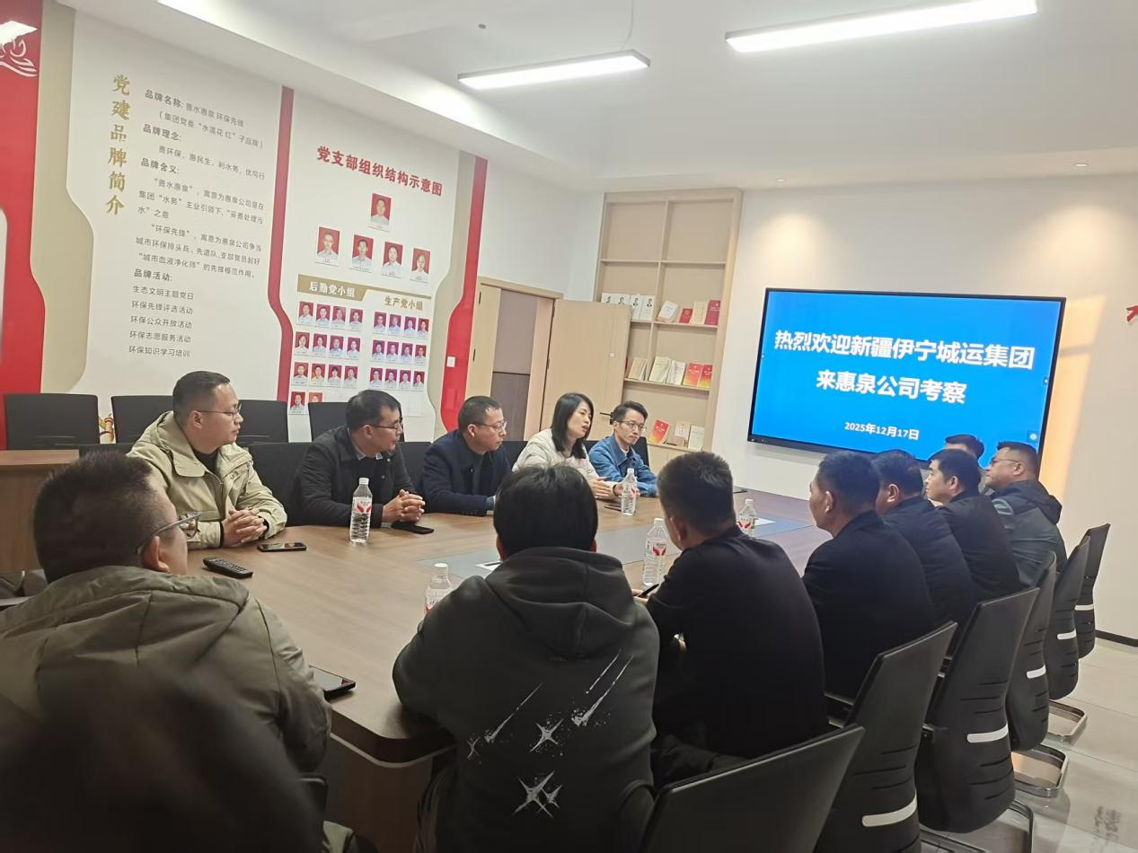12月17日,新疆伊寧城運(yùn)集團(tuán)黨委副書記、副董事長、總經(jīng)理閆勇杰率考察團(tuán)一行8人蒞臨我司進(jìn)行考察交流。集團(tuán)黨委委員、副總經(jīng)理、財(cái)務(wù)總監(jiān)朱亞成,集團(tuán)黨委委員、副總經(jīng)理李莉君,惠泉公司董事王辰及相關(guān)負(fù)責(zé)人陪同接待。
