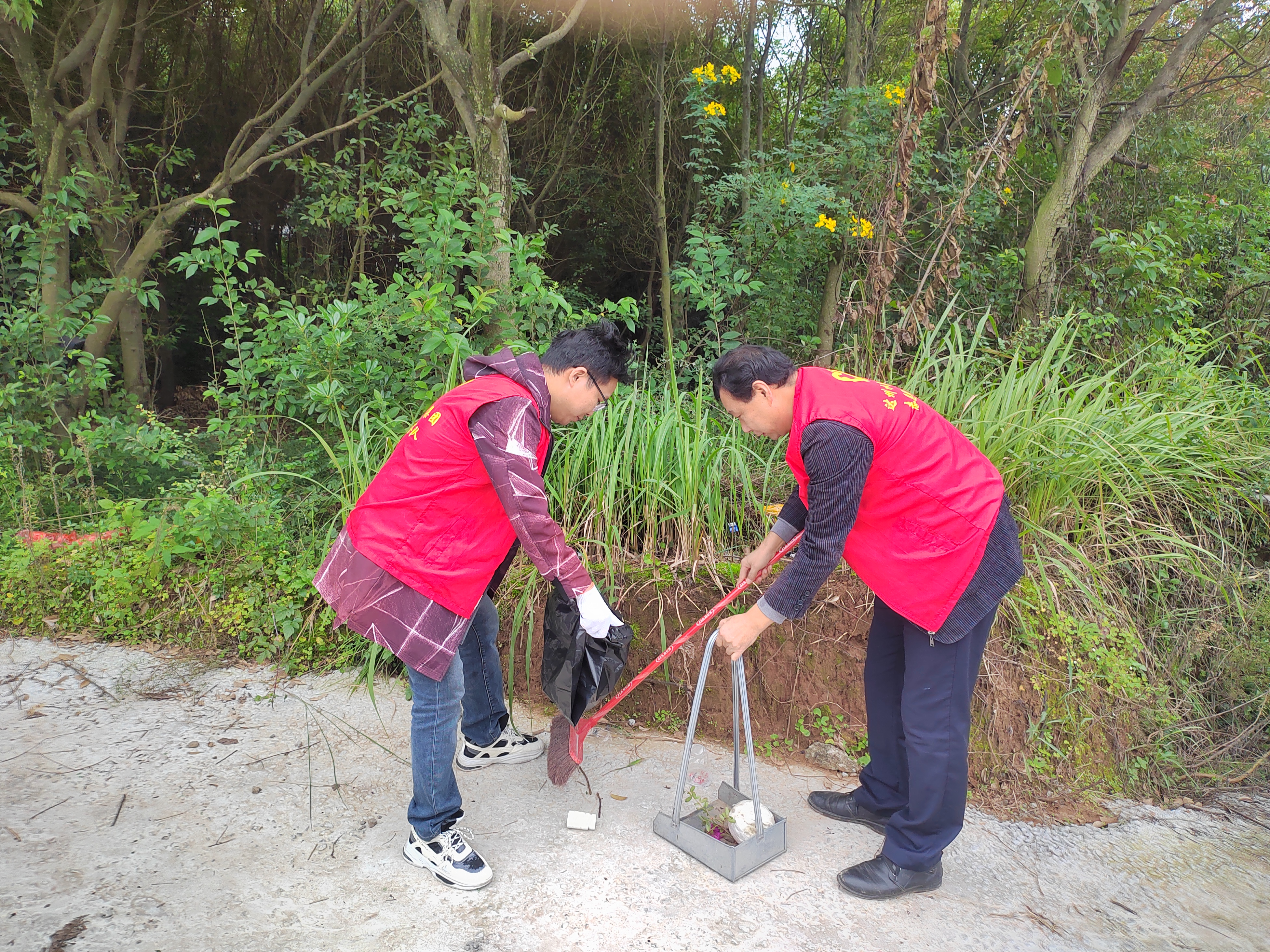 活動(dòng)中,員工們攜帶垃圾袋、夾子等工具分散作業(yè):一邊感受山間秋意,一邊細(xì)致清理草叢、路面的塑料瓶、廢紙屑等垃圾,并做好分類處理,在體驗(yàn)中踐行環(huán)保責(zé)任。