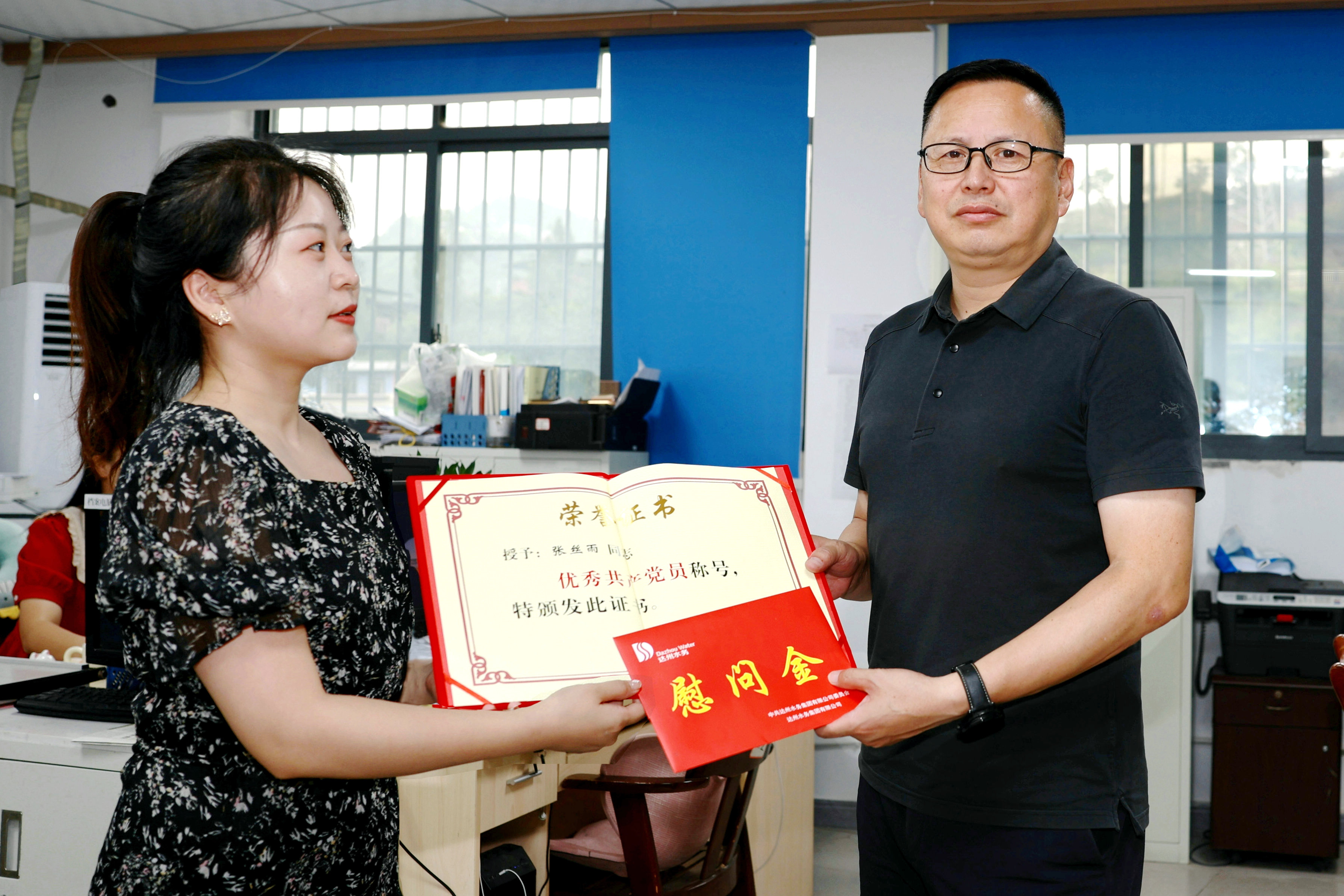 支部聯(lián)系領導向獲2024年集團公司優(yōu)秀共產(chǎn)黨員及優(yōu)秀黨務工作者頒發(fā)榮譽證書,向受到表彰的優(yōu)秀個人送上熱烈祝賀,也希望獲獎同志能夠更好發(fā)揮黨員先鋒模范作用,全體黨員要以先進典型為榜樣,向優(yōu)秀代表看齊,在創(chuàng)建高質(zhì)量達州水務新征程上彰顯更強擔當、展現(xiàn)更大作為。
