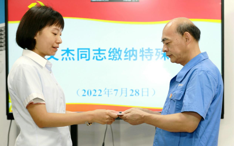 得到愛,分享愛。楊義杰同志的無私奉獻精神受到了集團公司黨委的高度關注,也得到了上級黨委授予的各項榮譽。每年春節(jié)前,公司黨委均要慰問他這位省勞模,為他送去慰問金。他在感恩之時,也牢記自己的黨員身份,多次向黨組織繳納特殊黨費,表達對黨組織的感激之情。2014年6月17日,他繳納特殊黨費1000元,要求不作宣傳,不要讓同事們知道。2017年10月,他又向黨組織繳納特殊黨費1000元,以迎接黨的十九大隆重召開。去年,為迎接黨的二十大勝利召開,他再次交納1000元大額黨費,以表達他對黨的無限忠誠和熱愛。