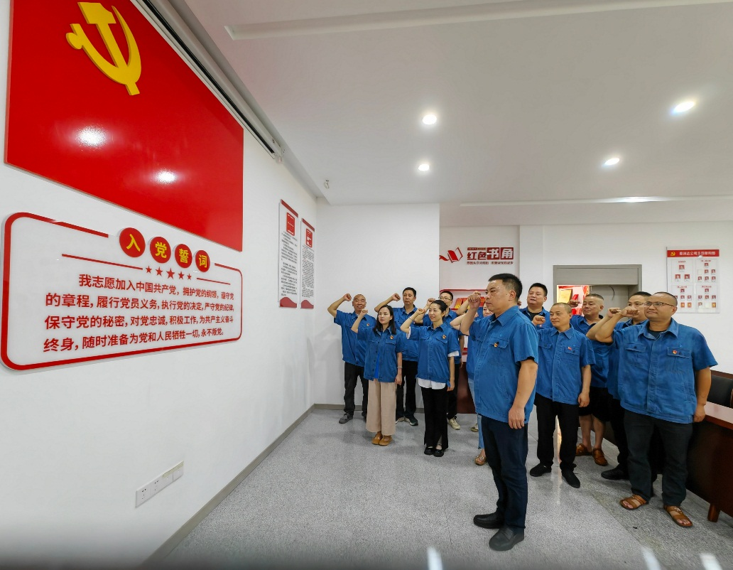 踐初心,重溫一次入黨誓詞。 面對(duì)鮮紅的中國(guó)共產(chǎn)黨黨旗,支部全體黨員佩戴黨徽,舉起右拳,誓言如山,擲地有聲,面向黨旗莊嚴(yán)宣誓,回顧申請(qǐng)入黨時(shí)的飽滿激情和孜孜追求,回顧入黨宣誓時(shí)的莊嚴(yán)承諾和堅(jiān)定信念。全體黨員干部用自己的言行舉止踐行誓詞,以積極的精神狀態(tài)當(dāng)好標(biāo)桿,永葆黨員本色。在莊嚴(yán)的宣誓中,全體黨員接受了一次深刻的黨性教育,更加堅(jiān)定了為共產(chǎn)主義奮斗終身的理想和信念。