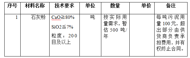 1.1項目名稱:達州市惠泉污水處理有限公司石灰粉采購項目